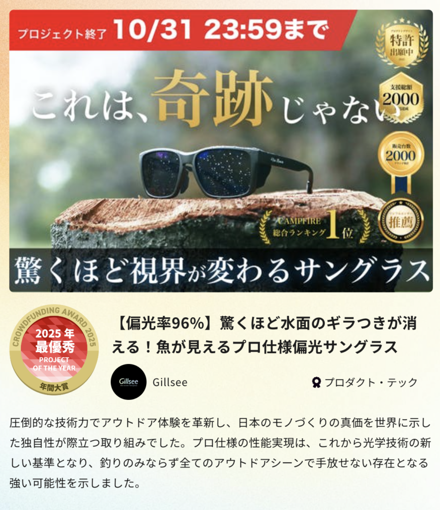 『クラウドファンディングアワード2025』【下半期ベストプロジェクト/プロダクト・テック部門・革新アイデ...